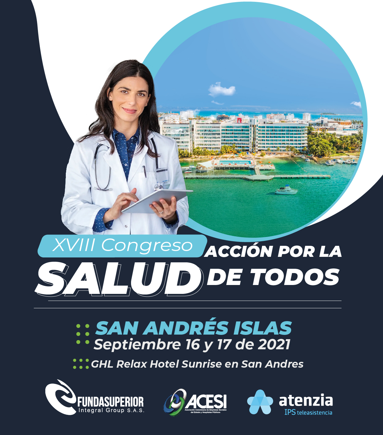 El Congreso ACCIÓN POR LA SALUD DE TODOS organizado por ACESI - Asociación Colombiana de Empresas Sociales del Estado y Hospitales Públicos - con el apoyo de FUNDASUPERIOR INTEGRAL GROUP SAS llega a su versión No. XVIII posesionándose cada vez más como uno de los más importantes para el análisis y proyección del Sistema de Seguridad Social en Salud en Colombia. El congreso reúne regularmente a Gerentes y Directivos de ESEs, IPSs, Aseguradores, la Industria Farmacéutica, Autoridades Nacionales y Territoriales del sector, con excelentes resultados para el mejoramiento del SGSSS.