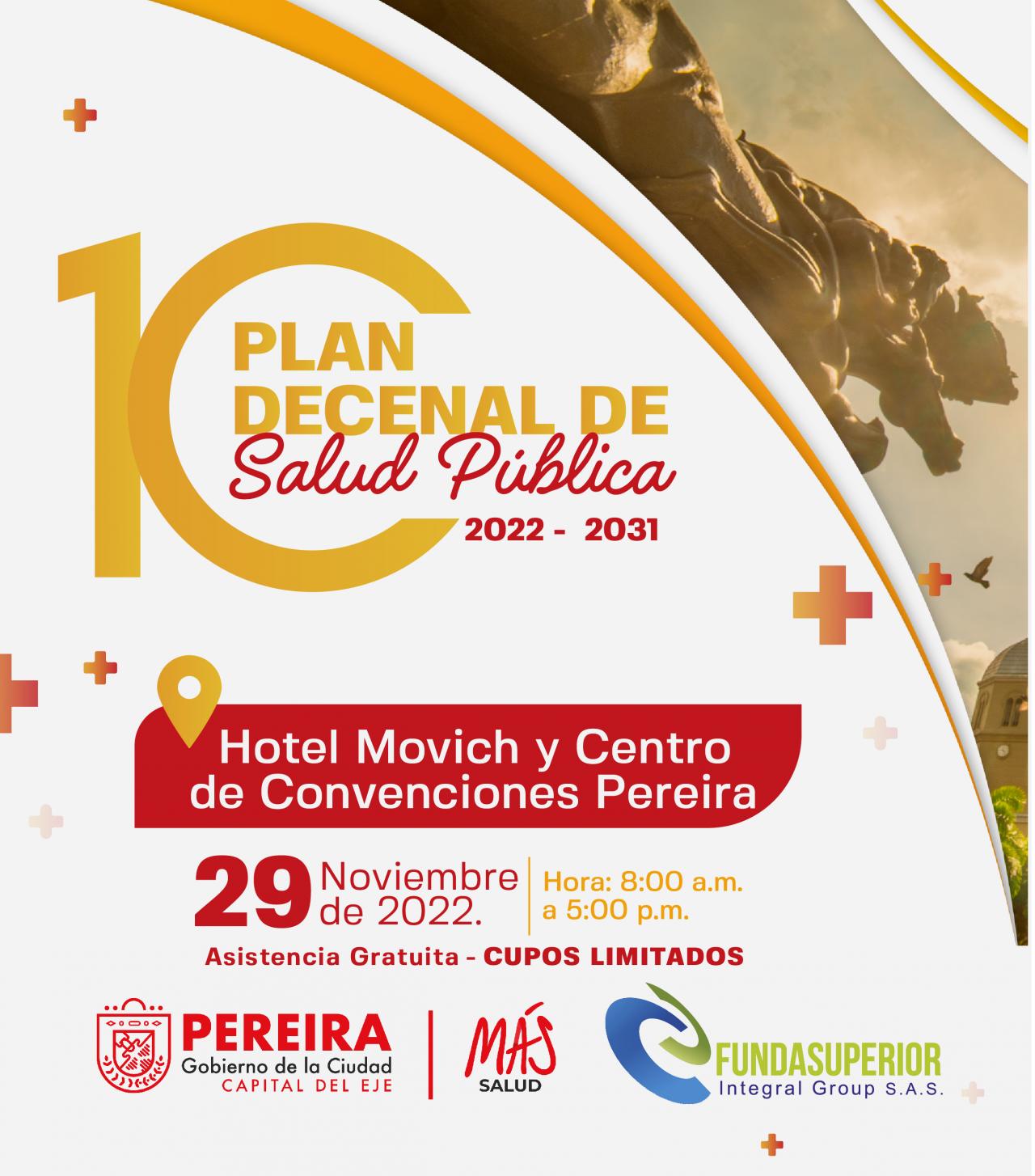 El presente evento es un esfuerzo de la Secretaria de salud de Pereira con el apoyo de Fundasuperior Integral Group para llevar de primera mano a los diferentes actores del sistema los aspectos más relevantes del Plan Decenal de Salud Pública 2022-2031 establecido por el gobierno nacional;