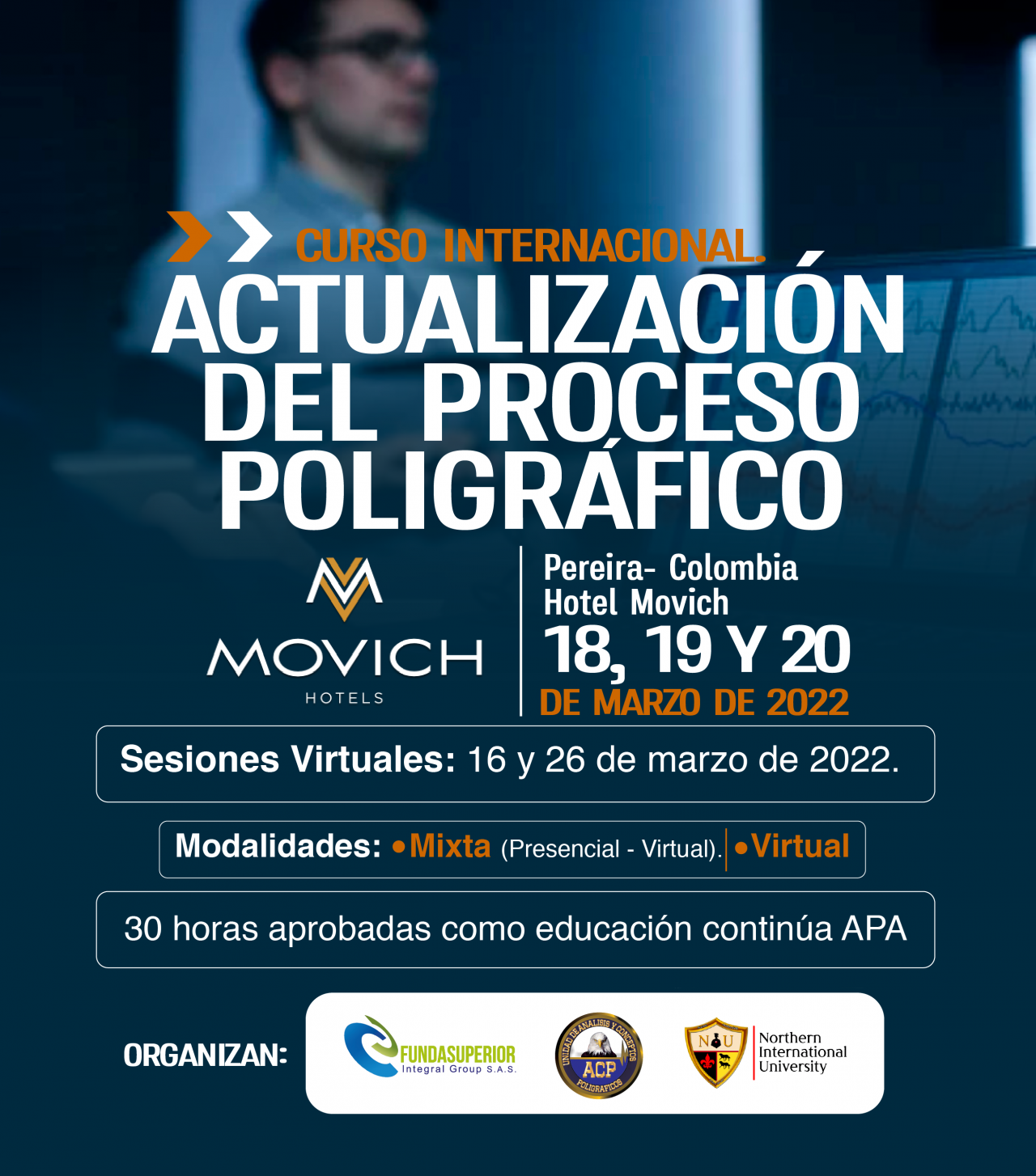 El presente curso tiene como objetivos fundamentales la Actualización del Proceso Poligráfico y brindar a los participantes las herramientas necesarias para poder ejercer las mejores prácticas en poligrafía, teniendo una mayor comprensión de su alcance y funcionalidad en la actualidad, además, tendrás la oportunidad de comparar la información actual con la adquirida previamente para poder replicar los modelos internacionales de las mejores prácticas actuales acorde con los estándares APA y ASTM.